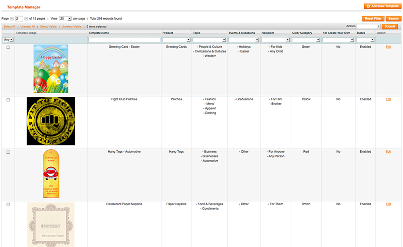 Enable templates when you want to show them to customers and disable them when you want to hide them. Pixopa Web-to-Print Template Builder allows you to control the templates with a single click.3. Associate to Categories and Color