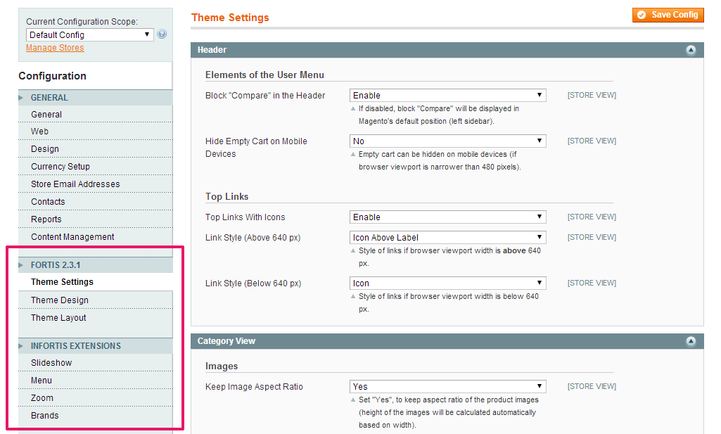 Content placeholders (also called custom blocks) ready to display custom content in almost every part of the store. Using these placeholders you are able to insert your content into product page, shopping cart, checkout, header, footer, CMS pages etc. Everything edited from the admin panel