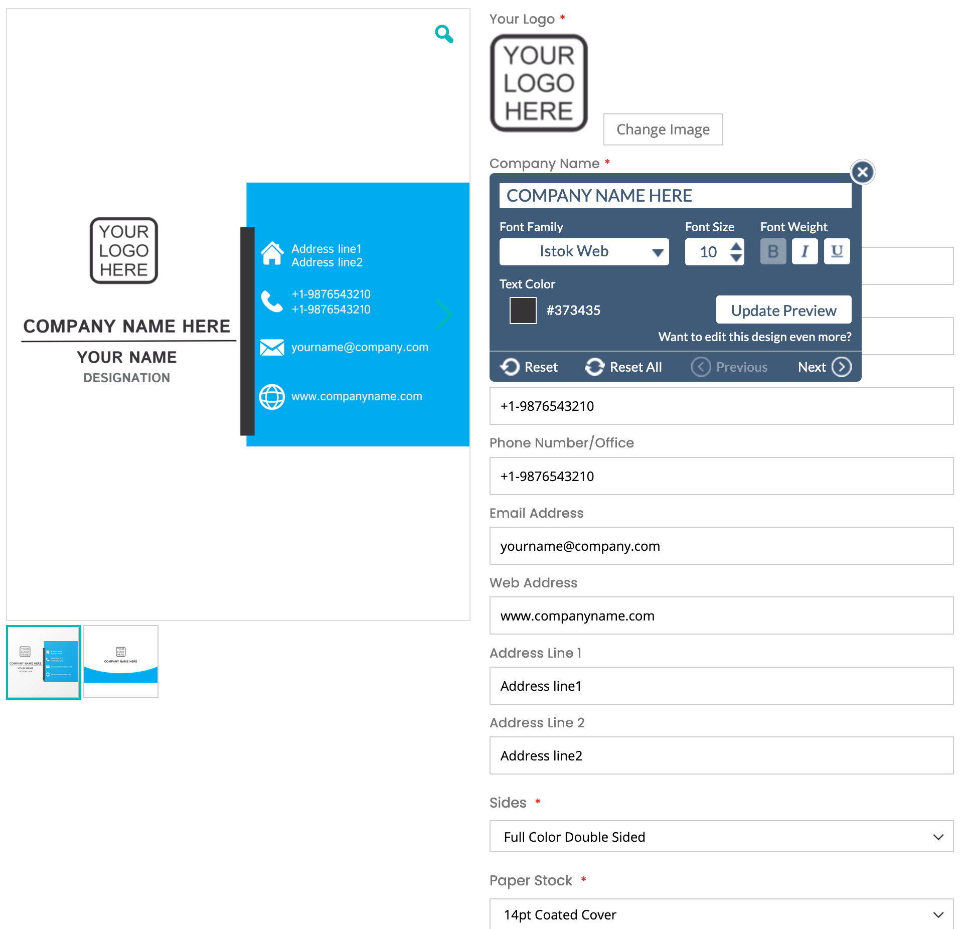 As another powerful alternative to the HTML5 Online Designer, customers can personalize designs from Magento Product Page as well. This works well for designs that just have Text and Image changes and customers can easily modify them without using Online Designer. This helps a lot with better conversion rate as customers can skip Design Tool completely and order quickly.